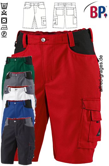 BP®1792555-X Arbeitsshorts Dehnbund 65% Polyester, 35% Baumwolle. Ca. 290 g/m², 60° waschbar, doppelter Bundknopf und rückwärtiger Dehnbund für optimalen Sitz, ergonomischer Schnitt, D-Ring zum Befestigen von Accessoires, BP Shorts mit 2 Seitentaschen mit 1 Geldtasche, 2 Gesäßtaschen mit Halbtresor-Taschenklappen, freihängende doppelte Zollstocktasche, Schrittlänge ca. 30 cm, Gürtelschlaufen, LIEFERUNG ERFOLGT OHNE GÜRTEL, in königsblau/schwarz, weiß/dunkelgrau, schwarz/dunkelgrau, dunkelgrau/schwarz, mittelgrün/schwarz und rot/schwarz erhältlich, bitte wählen Sie die Farbe aus, Gr. 44n-60n