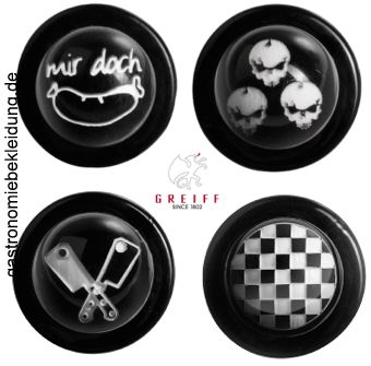 Kochknöpfe, Kochjackenknöpfe mit Motiv, ausgefallene Kugelknöpfe für Kochjacken & Knopfleisten schwarz & weiß, etc. finden Sie sortiert nach Hersteller, günstigsten Preis, etc. unter gluecksburger.de | |